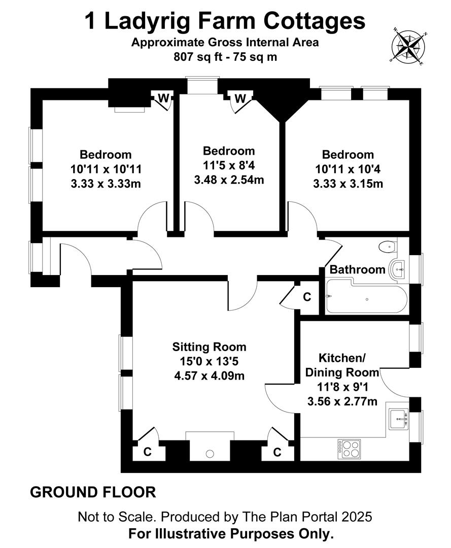 Nestled off a quiet minor road in the picturesque hamlet of Ladyrig, the cottage occupies a desirable end position within the terrace, enjoying generous outdoor space and open countryside views. A spacious lawned area to the side provides excellent potential for extension both to the side and up into the roof (subject to planning consent), while the private, sheltered patio to the rear is perfect for relaxing evenings and admiring the sunset and stars.