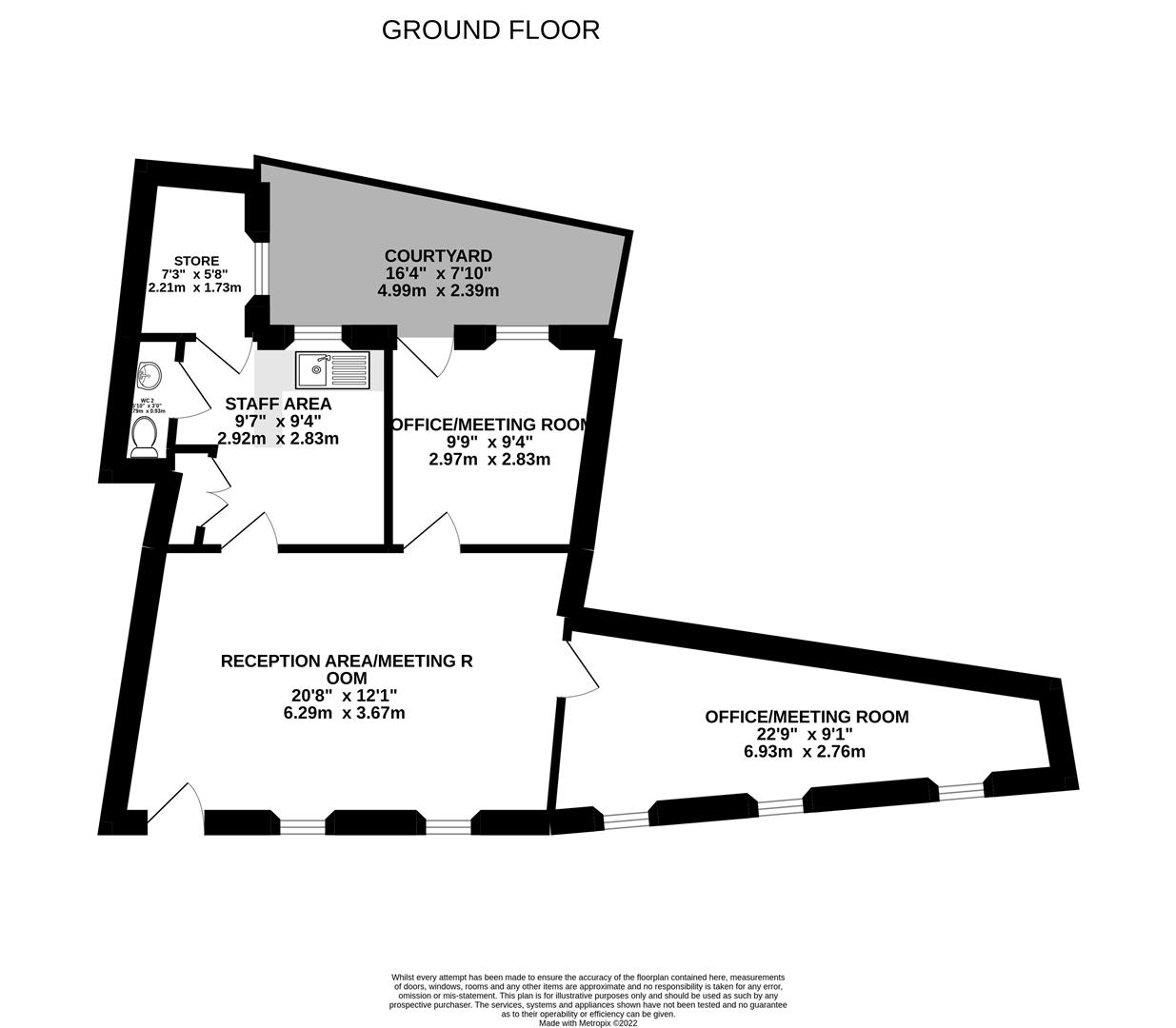 A walled courtyard lies to the rear of the property with external door giving access off the rear office/meeting room.