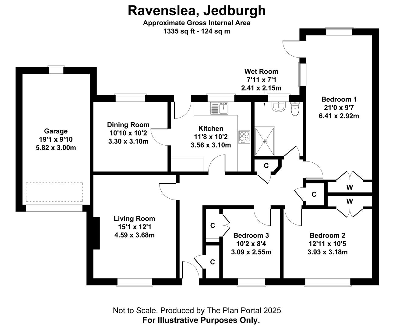 Located on a popular and well established street in Jedburgh, this spacious three bedroom bungalow offers comfortable and versatile living with beautiful open views. All bedrooms feature built in wardrobes, with the rear room having been extended and adapted for disabled access. The property boasts a generously proportioned living room, an adjoining kitchen and a separate dining room – which offers excellent potential to be opened up, creating a more contemporary open plan layout if desired.