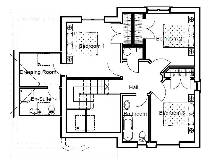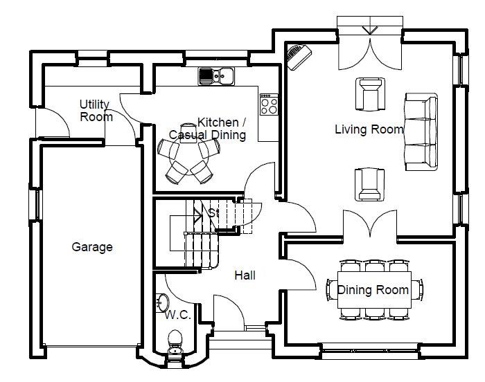 A popular three double bedroom house. The kitchen is located to the rear and has space for a breakfasting area with access to the utility room and integral garage. The dining room is located to the front. The master bedroom has a dressing room and en-suite shower room with velux window. There is a family bathroom and plenty of storage on the first floor.